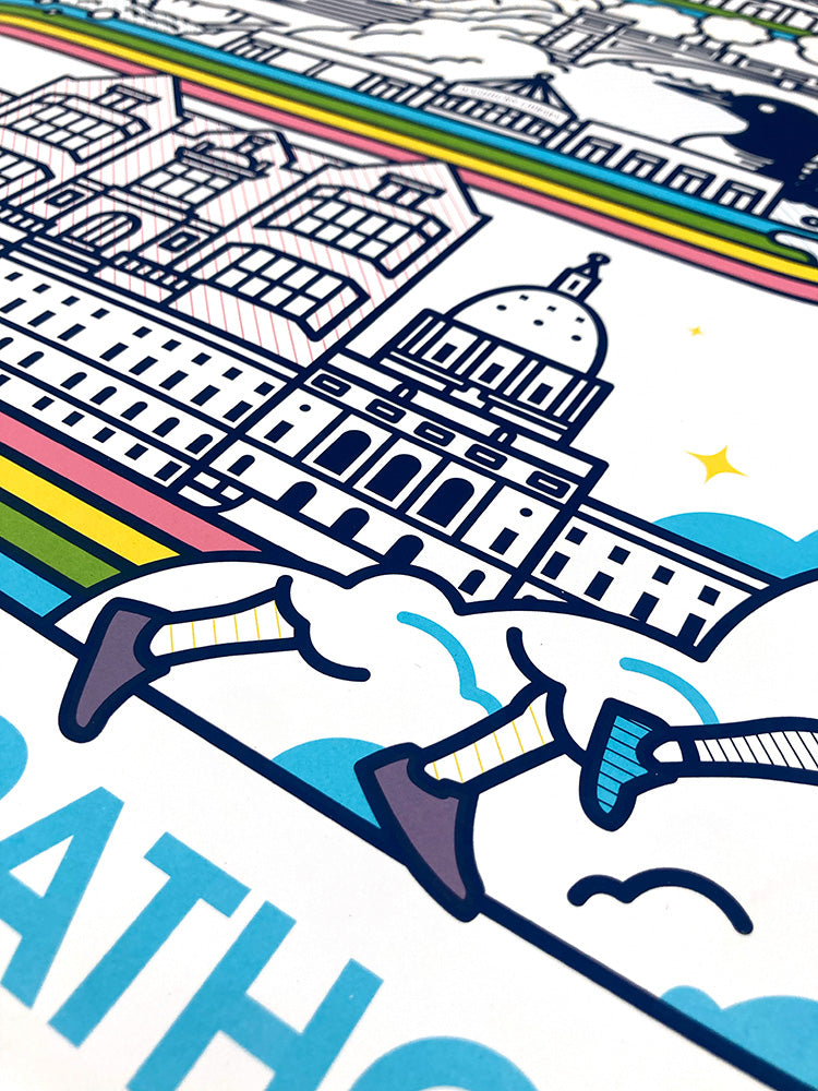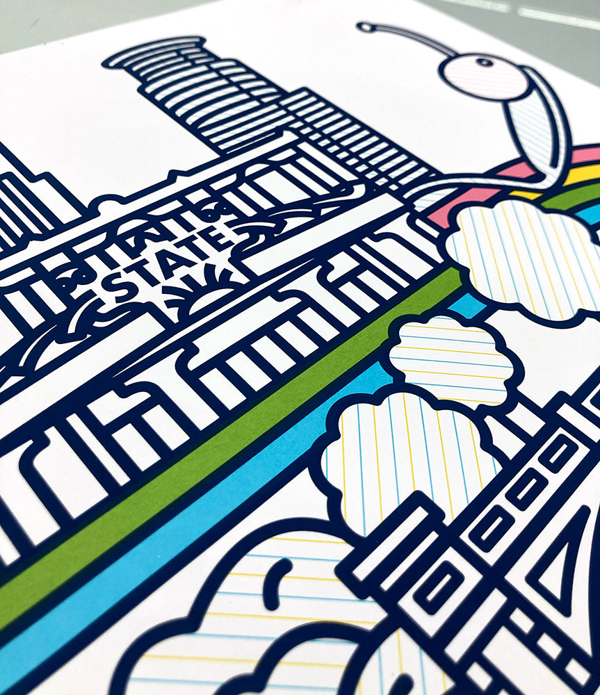 Our own Mike Davis is one of the artists involved and we're thrilled to present his poster, a vivid trip through Minneapolis and Saint Paul, passing by the landmarks along the race path from one downtown to the other.