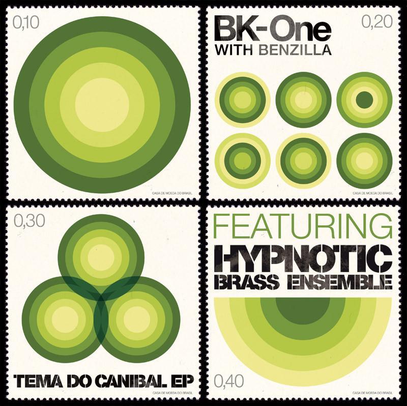 The minimal postage stamp theme continues as BK releases the first vinyl single from his "Radio Do Canibal" album. The EP features a crazy new verse from Burlesque favorite MF DOOM, a gorgeous original reinterpretation of the title track by Brazilian legend Arthur Verocai, and a bangin' uptempo remix from our own Mike 2600!