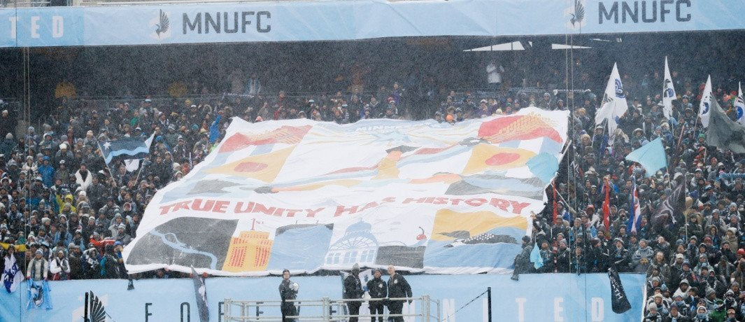 When Minnesota United football club played their debut Major League Soccer home game in March 2017, United's support squad, Dark Clouds, wanted to show off a gigantic banner. For this banner, also known as a tifo, Dark Clouds hired Burlesque to create a fresh design that celebrated the team's history as well as some Minnesota state pride.