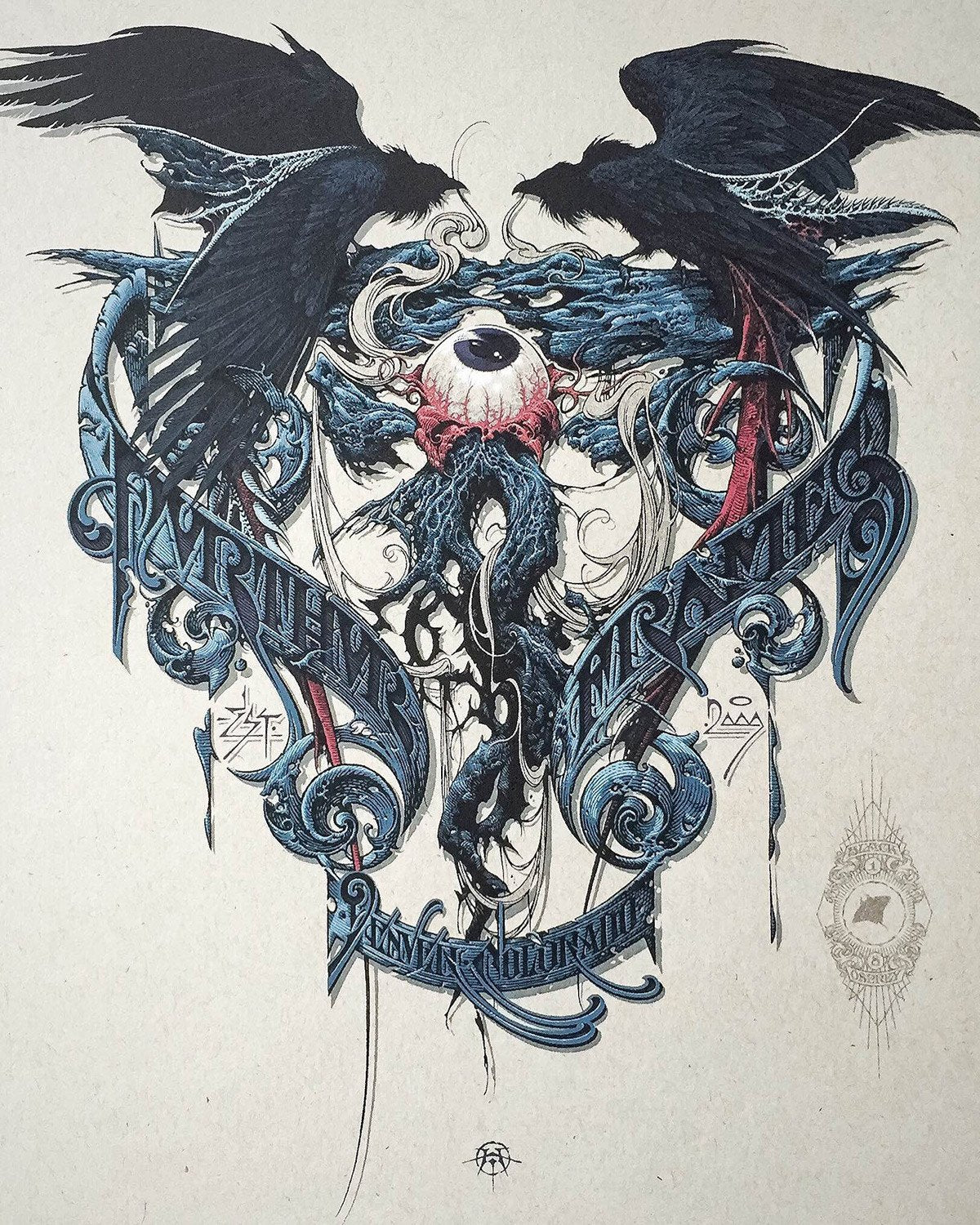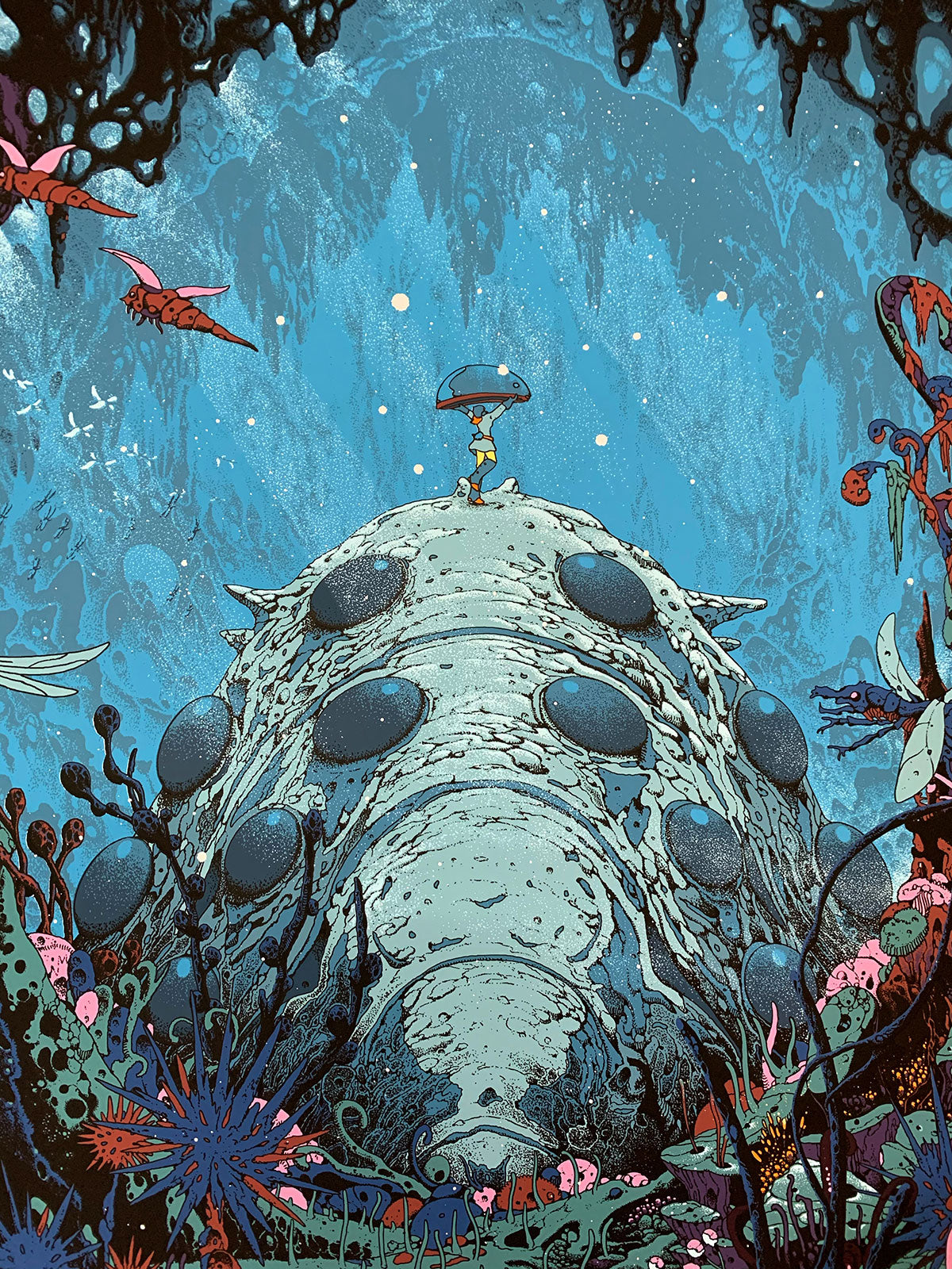 The result is a wild collection of completely unique, one-of-a-kind prints, all signed and numbered by the artists in an edition of 100. The total run of prints is split into what we're referring to as the Dark Version and Light Version.