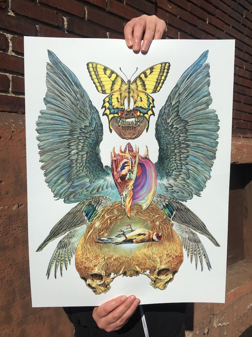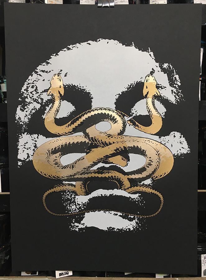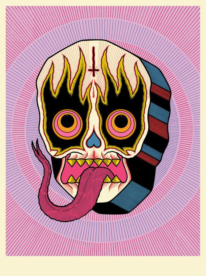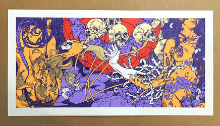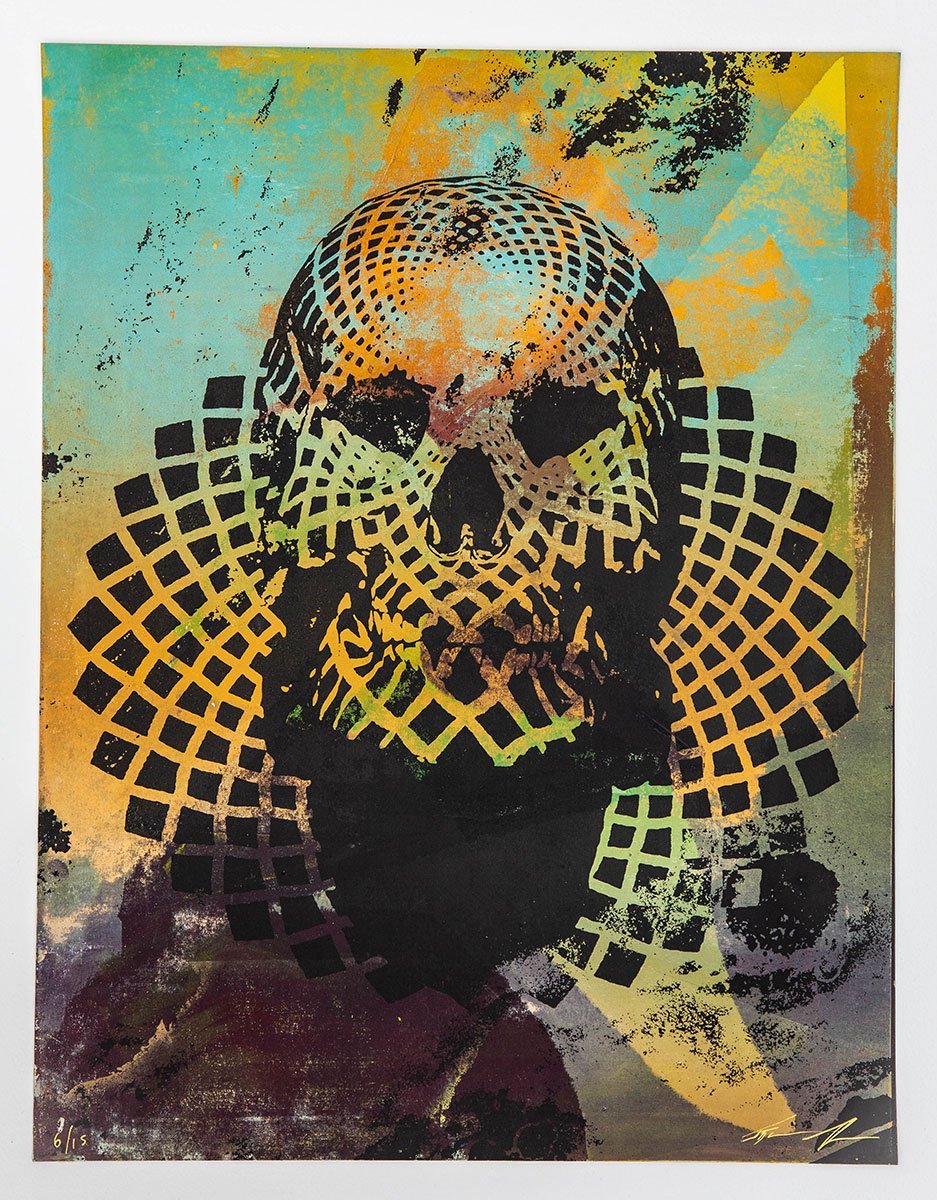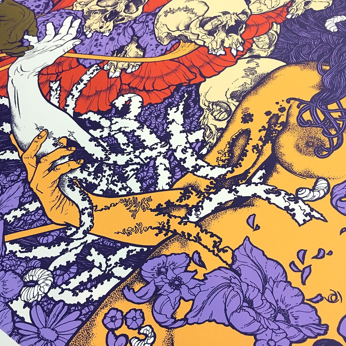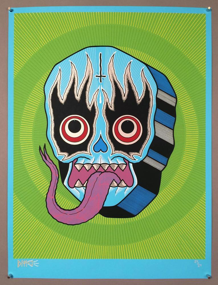Another multi-colored screenprint from our Dutch friend Marald Van Haasteren doing what he does best. Seamlessly mixing symbols of life and death, Marald brings his unique style front and center in this gorgeous piece.