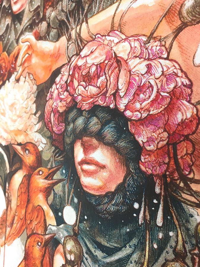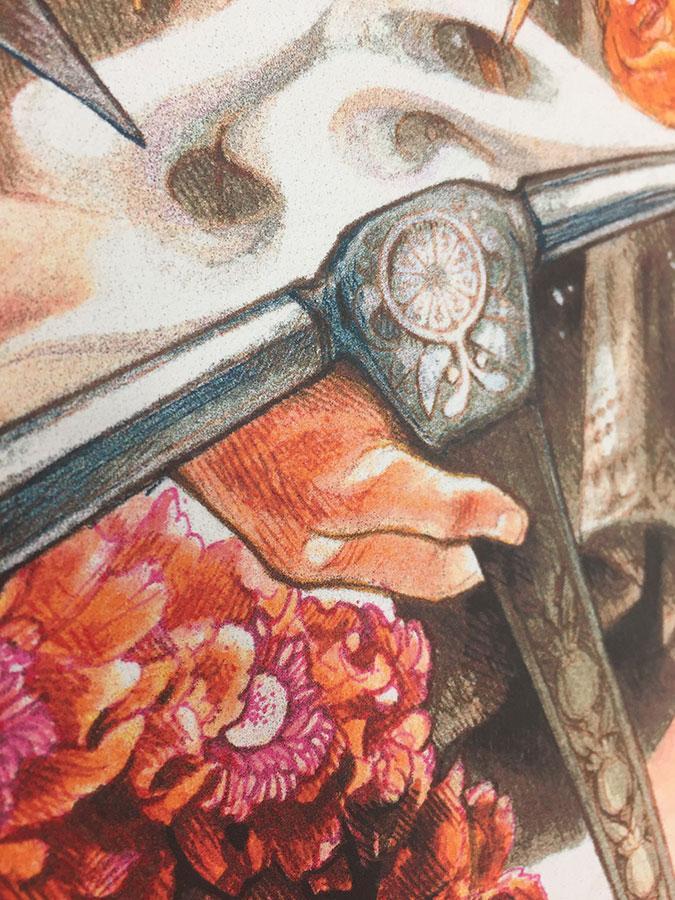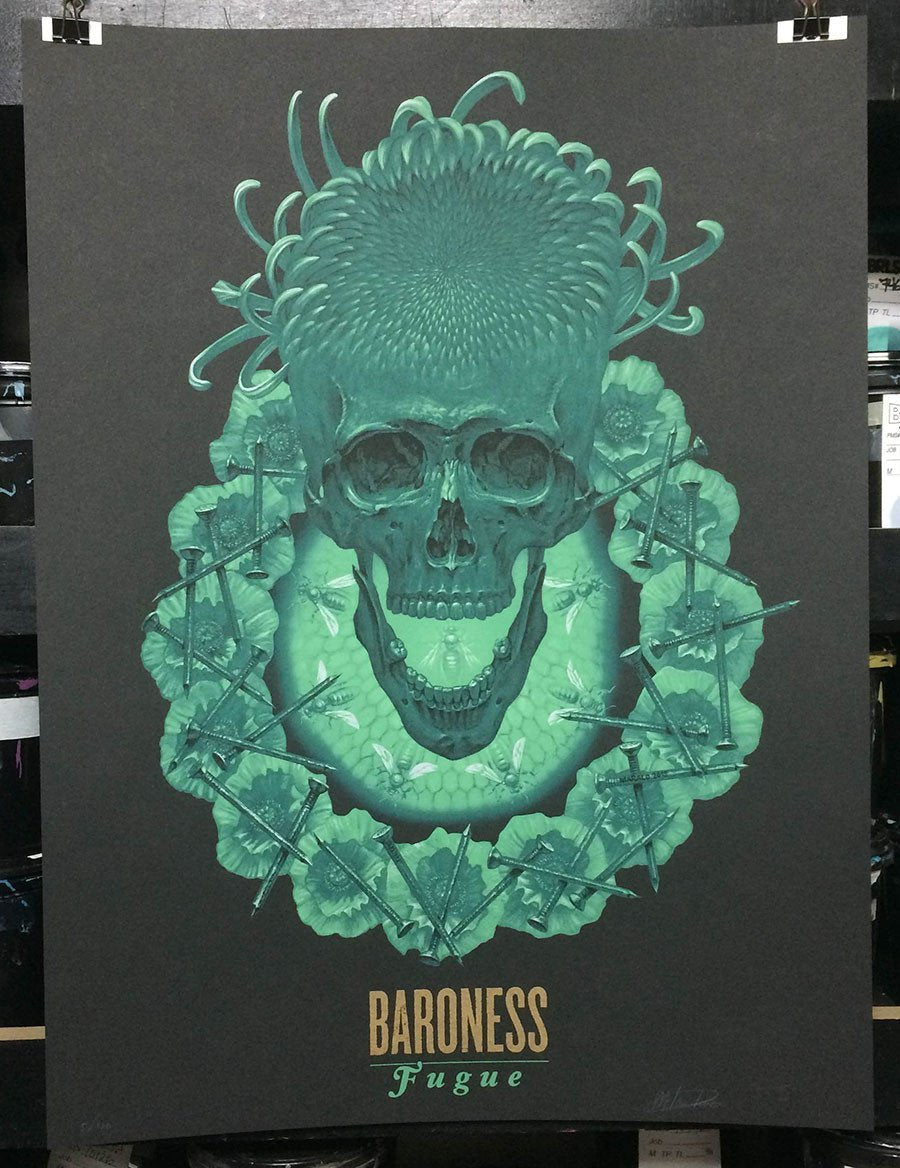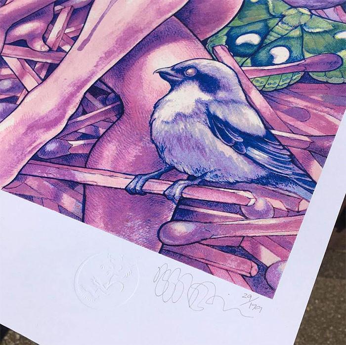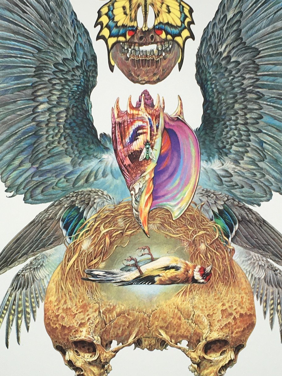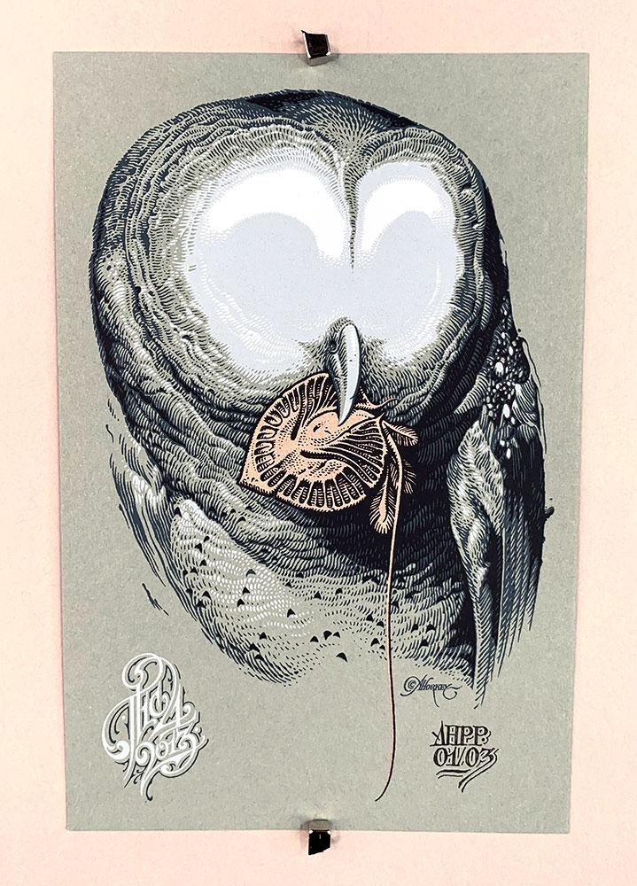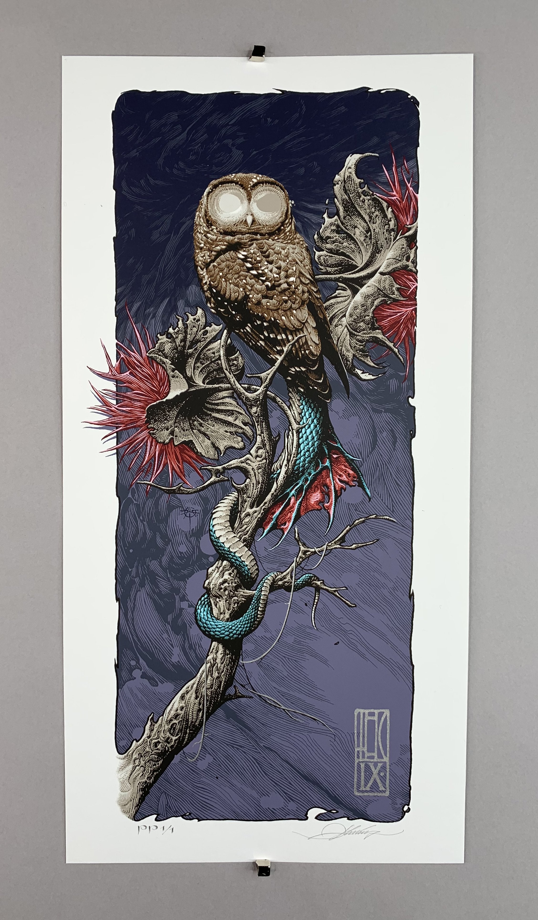 Another multi-colored screenprint from our Dutch friend Marald Van Haasteren doing what he does best. Seamlessly mixing symbols of life and death, Marald brings his unique style front and center in this gorgeous piece.