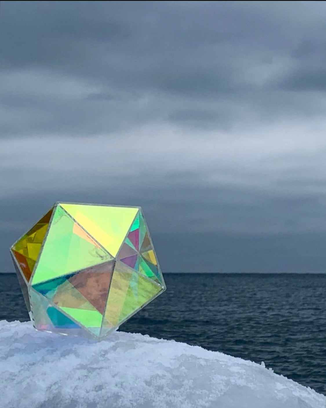The photo was taken through a hand made dichroic acrylic sculpture by Ben's friend John Foster (pictured below) and the model is friend of BRLSQ Vanessa Salour.
