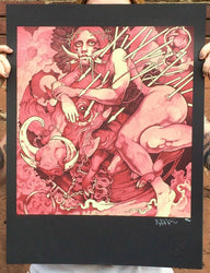 We are honored to present our art print from David Choe! David's 5 x 6' painting "Exodus From the Land of Play" has been converted into an 18 color screenprint. To top it all off, David has signed, numbered, and also drawn and painted on every single print, making each print truly unique!
