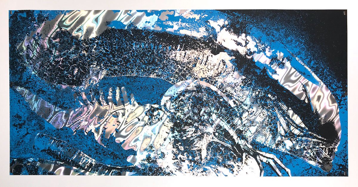 Variant edition - 5 color screenprint w/ 4 metallics on Cougar Natural and reflective chrome paper