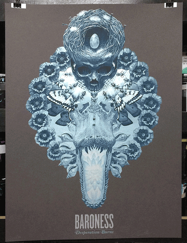 John Baizley's latest offering is a screenprinted diptych based on the artwork from his group Baroness' Blue Album.