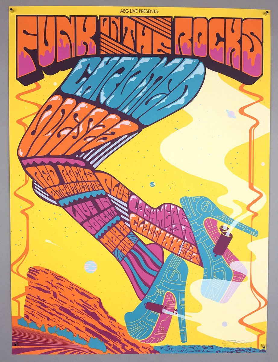 Mike Davis brings the classic pyschedelic styles to celebrate Chromeo's May 2015 West Coast takeover! This poster is from their concert at Morrison Colorado's legendary Red Rocks Amphitheatre.