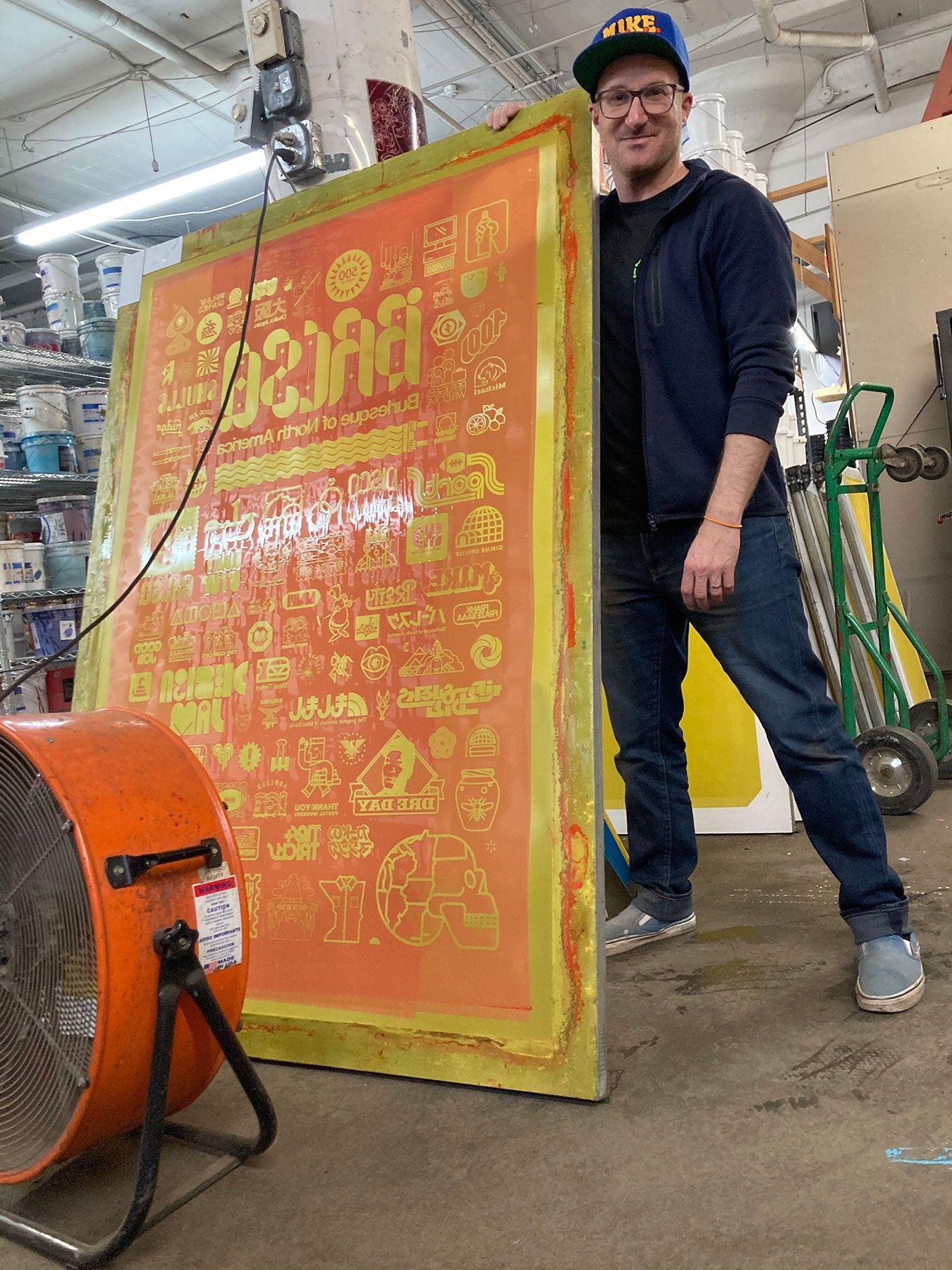 Cey Adams is a legendary graphic designer, graffiti artist, and fine artist straight out of New York. He has worked on iconic projects for The Beastie Boys, Smithsonian, Levi's, Dave Chappelle, and The Notorious B.I.G. Recently, he has been painting brightly colored, psychedelic LOVE murals across the U.S. and just blessed the exterior wall of Hampden Park Co-op with one that perfectly matches this new print.