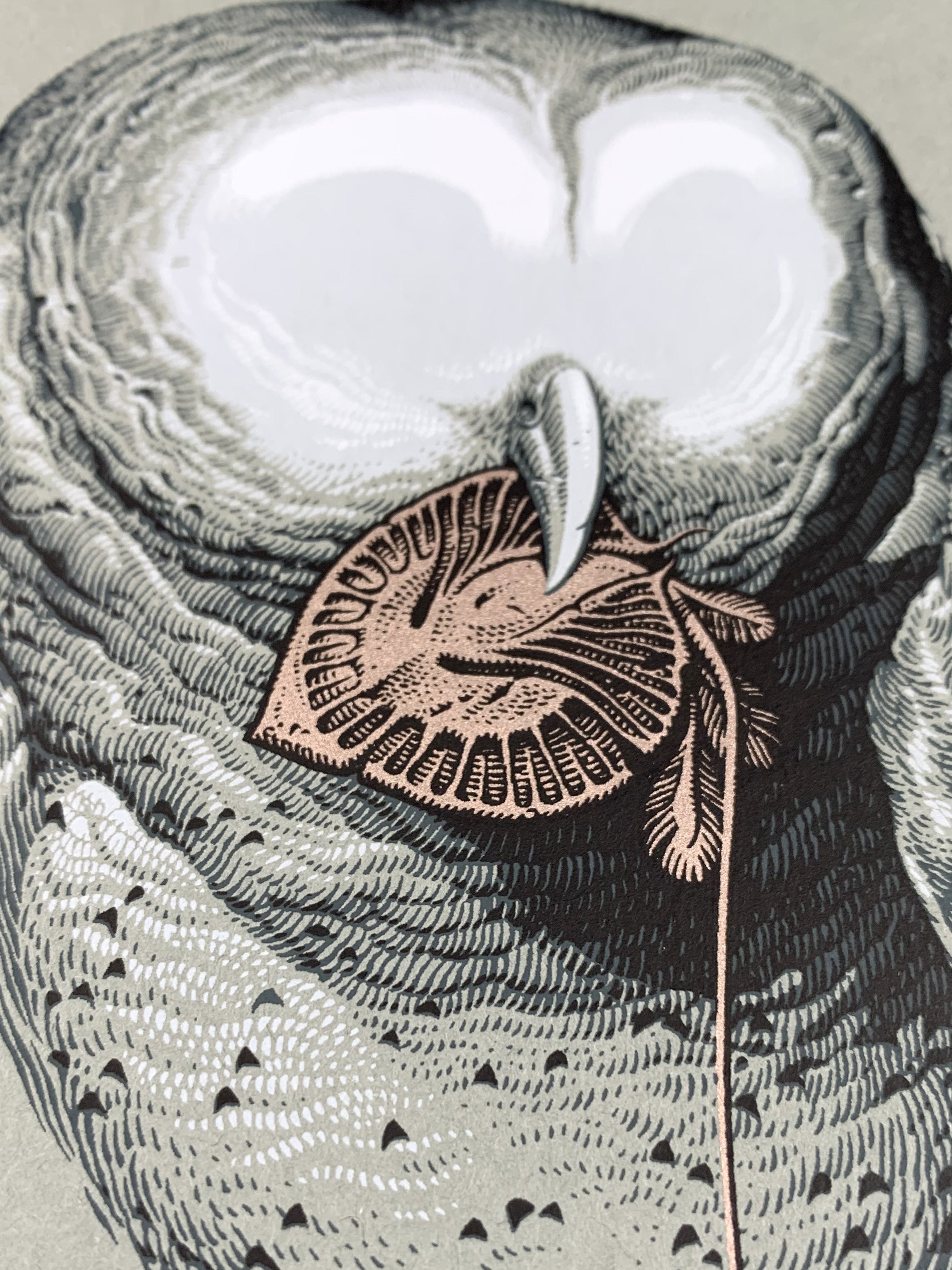 7 color screenprint w/ metallic gold on French Construction Grout Grey paper