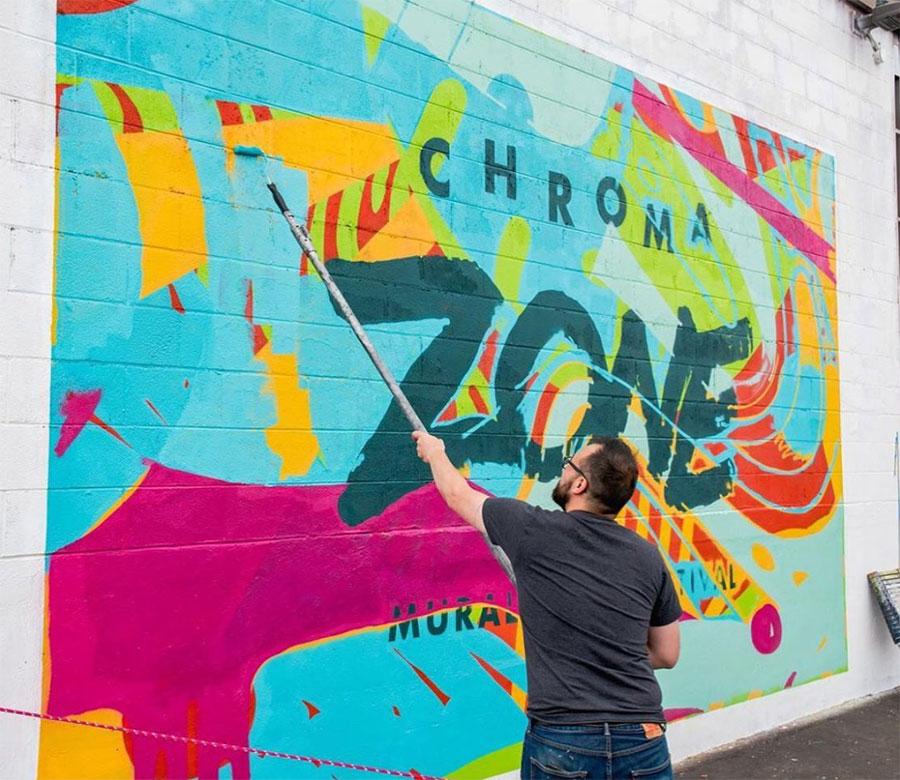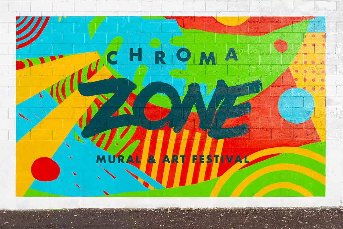 In September 2019, the very first Chroma Zone Mural & Arts Festival went off with 12 large outdoor murals painted by local, national, and international talent. Among other responsibilities, Burlesque was tasked with creating all of the visuals to brand and promote the event. We built everything from the main logo and visual identity, stickers, postcards, pocket event guide, wayfinding signage, and even our own mural to announce the event.