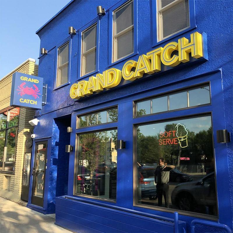 When World Street Kitchen / Milkjam Creamery mastermind chef Sameh Wadi approached us about designing the branding and interior artwork for his team's next restaurant, we immediately hopped on board! Located in Saint Paul, Grand Catch is a tribute to seafood boils, drawing inspiration from traditional Cajun recipes as well as Vietnamese-Cajun fusion styles. It's also home to one of the best fried chicken sandwiches you'll ever eat!